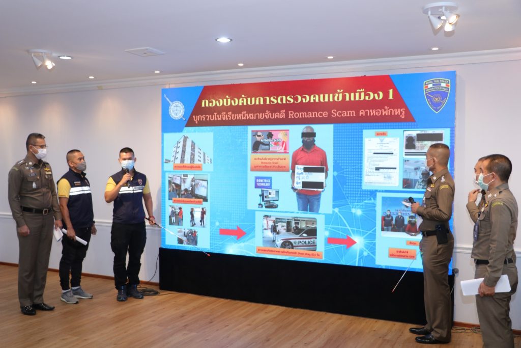 วันที่ 7 เม.ย.64 เวลา 10.30 น.ณ ห้องอเนกประสงค์ ชั้น 1 อาคาร 1 สตม. ซอยสวนพลู แขวงทุ่งมหาเมฆ เขตสาทร กทม. : พล.ต.ท.สมพงษ์ ชิงดวง ผบช.สตม. พร้อมด้วย พล.ต.ต.อาชยน ไกรทอง รอง ผบช.สตม.,พล.ต.ต.ปิติ นิธินนทเศรษฐ์ ผบก.ตม.1,พ.ต.อ.ยศเอก รักษาสุวรรณ รอง ผบก.ตม.1 และ พ.ต.อ.กีรติศักดิ์ ก้องเกียรติศิริ ผกก.สส.บก.ตม.1 พร้อมชุดสืบสวนฯ ร่วมแถลงข่าวการจับกุมคนร้าย ดังนี้