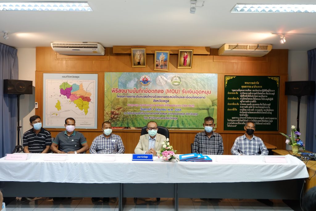 สำนักงานเกษตรจังหวัดสตูล โดยนายปัทพงศ์ สารบรรณ์ เกษตรจังหวัดสตูล จัดพิธีลงนามบันทึกข้อตกลง (MOU) รับเงินอุดหนุน ระหว่างกรมส่งเสริมการเกษตร (ผู้สนับสนุนงบประมาณ) กับกลุ่มเกษตรกรแปลงใหญ่ (ผู้ได้รับการสนับสนุนงบประมาณ) ภายใต้โครงการ “ยกระดับแปลงใหญ่ด้วยเกษตรสมัยใหม่และเชื่อมโยงตลาด” ณ สำนักงานเกษตรจังหวัดสตูล ตำบลพิมาน อำเภอเมือง จังหวัดสตูล