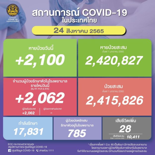 ผู้ป่วยรายใหม่ (รักษาตัวใน รพ.) จำนวน 2,062 ราย จำแนกเป…