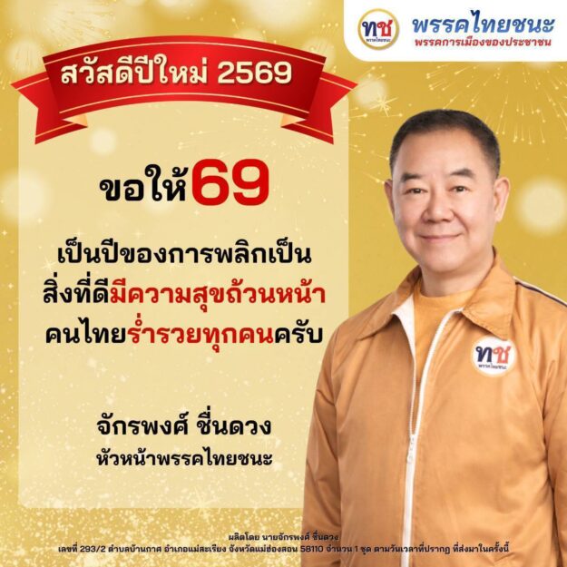 สารวันปีใหม่ พุทธศักราช 2569 จากใจ “พรรคไทยชนะ” เบอร์ 17 ถึงพี่น้องประชาชนชาวไทย