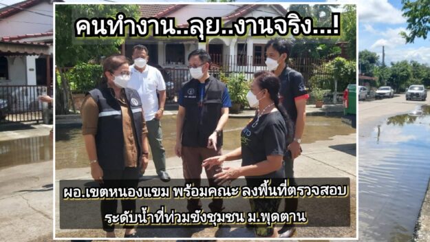 ผอ.เขตหนองแขม พร้อมคณะ ลงพื้นที่ ตรวจสอบระดับน้ำที่ท่วมขังชุมชน ม.พุดตาน.