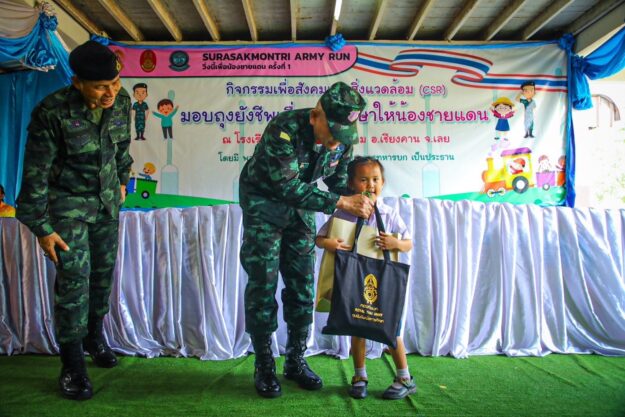 ผบ.ทบ./ผบ.ศปก.ทบ. ลงพื้นที่ตรวจเยี่ยมคณะครูอาจารย์ และนักเรียน พร้อมมอบถุงยังชีพเพื่อการศึกษา และมอบอุปกรณ์กีฬา ให้กับนักเรียนโรงเรียน ในพื้นที่ชายแดน