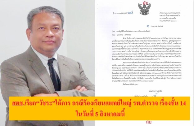 สตช.เรียก“วัชระ”ให้การ กรณีร้องเรียนแพทย์ใหญ่ รพ.ตำรวจ เรื่องชั้น 14 ในวันที่ 5 สิงหาคมนี้