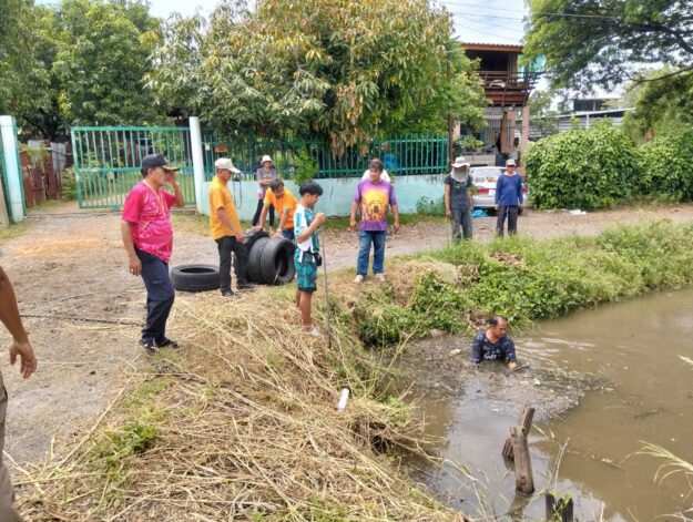 นายกองค์การบริหารส่วนตำบลหนองทรายขาวลงพื้นตักเศษกิ่งไม้…
