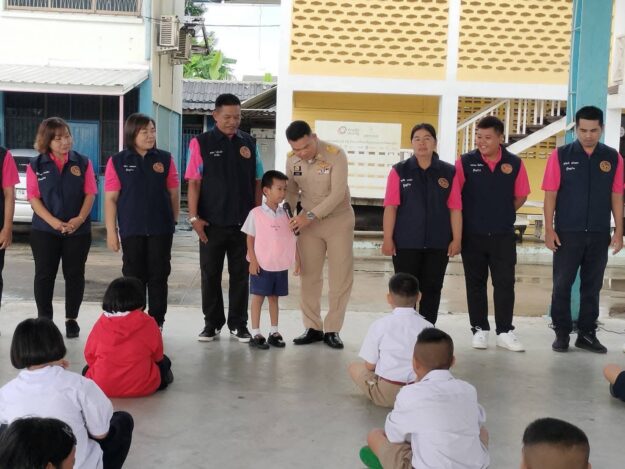 นายอำเภอเมืองลพบุรี ลงพื้นที่พบปะนักเรียนหน้าเสาธง สร้างภูมิคุ้มกันยาเสพติด