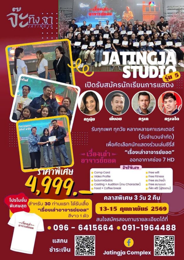 ใครมีความฝันอยากเข้าวงการบันเทิง ยกมือขึ้น! JATINGJA STUDIO รุ่น 5 เปิดรับสมัครแล้วนะ! รับทุกเพศ ทุกวัย ทุกคาแรคเตอร์ ขอแค่มีใจรักการแสดง