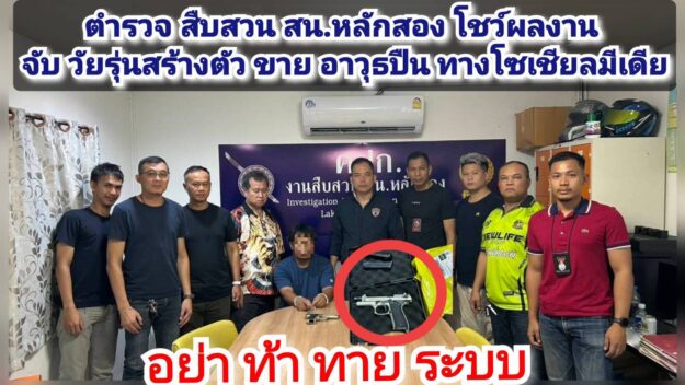 ตำรวจ สืบสวน สน.หลักสอง โชว์ผลงาน จับ ‘วัยรุ่นสร้างตัว” ขาย “อาวุธปืน” ทางโซเชียลมีเดีย