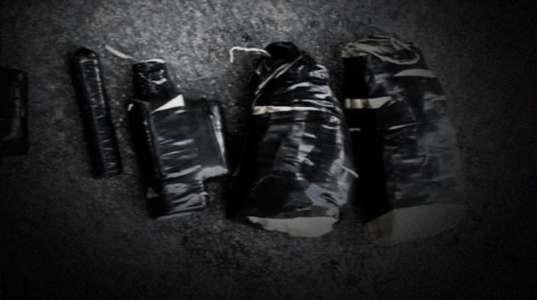2 อัน ถูกพันด้วยเทปสีแดง มีแผงวงจรและสายไฟต่อเป็นสายชนวนอยู่ด้านใน เจ้าหน้าที่จึงนำยางรถยนต์