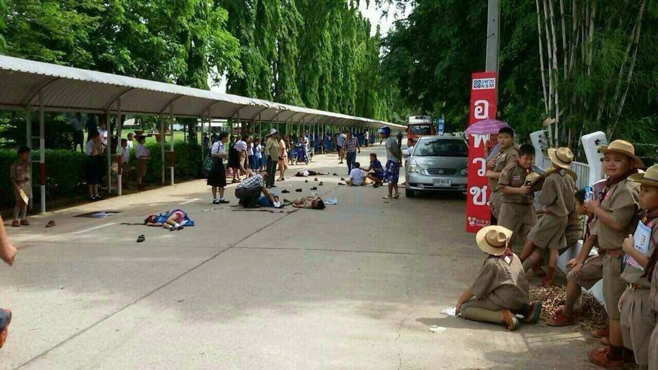 หลังเกิดเหตุ เจ้าหน้าที่ได้ระดมนำร่างผู้บาดเจ็บซึ่งเป็นนักเรียนจำนวน 13 คน ส่ง รพ.หนองบัวลำภู