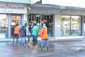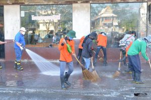 นายจำเริญ สละชีพ นายกเทศมนตรีเมืองลพบุรี พร้อมด้วย ว่าที่ร้อยโท ดร.จตุรงค์ ศิริพานิชกร รองนายกเทศมนตรีเมืองลพบุรี นายอนุสรณ์ อัศวสงคราม รองนายกเทศมนตรีเมืองลพบุรี นายนิทัศน์ ต้นจันทน์ ปลัดเทศบาลเมืองลพบุรี นำเจ้าหน้าที่งานป้องกันและบรรเทาสาธารณภัยเทศบาลเมืองลพบุรี เจ้าหน้าที่กองสาธารณสุขและสิ่งแวดล้อมเทศบาลเมืองลพบุรี ลงพื้นที่ทำความสะอาดล้างฟุตบาททางเท้า ถนนหน้าศาลพระกาฬ และ ถนนวิชาเยนทร์ ด้วยน้ำยาฆ่าเชื้อ เพื่อเป็นการระวังป้องกันการแพร่กระจายของโรคโควิด-19 และสร้างความมั่นใจให้กับประชาชนในพื้นที่เขตเทศบาลเมืองลพบุรี