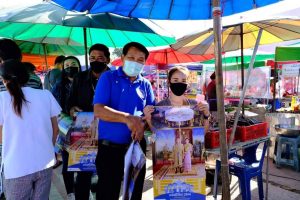 บรรยากาศภายในตลาดนัดหลังอำเภอเมืองลพบุรีได้มีพ่อค้าแม่ค้าประชาชนให้การต้อนรับยังอุ่น มีรอยยิ้ม รับปฏิทินอย่าทั่วหน้า ถึงคนจะเยอะแต่ทางเราก็มีการดูแลป้องกันเรื่องของโควิด-19 กันเป็นอย่างดีครับ ทางเราก็จะมีการใส่หน้ากากเฟสชิวและมีการตรวจวัดอุณหภูมิตามจุดต่างๆ มีการต่อแถวและเว้นระยะห่างอย่างเป็นระเบียบครับ