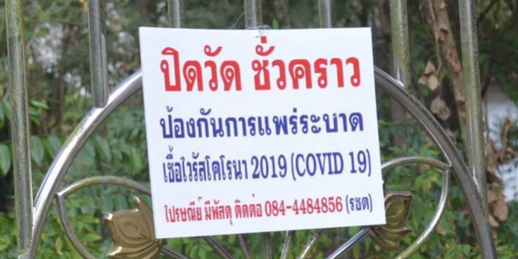 วันที่ 17 มค.64 ที่วัดหนองจระเข้ หมู่ 9 ต.บ่อทอง อ.กบินทร์บุรี จ.ปราจีนบุรี ได้ขึ้นป้ายปิดประกาศหน้าประตูทางเข้าวัดมีข้อความระบุว่า “งดกิจกรรมของวัด”