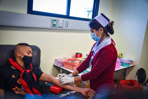 วันที่18 ม.ค.64 เวลา 09.30 น. ผู้สื่อข่าวรายงานว่าธนาคารเลือดอาคารเฉลิมพระเกียรติ ชั้น 5 โรงพยาบาลบุรีรัมย์ กำลังพลของหน่วยเฉพาะกิจกรมทหารพรานที่ 26 จำนวน 15 นาย ตบเท้าเรียงแถวร่วมบริจาคโลหิต เพื่อเก็บไว้ในคลังเลือดโรงพยาบาลบุรีรัมย์ และส่งต่อให้กับโรงพยาบาลที่ขาดแคลน เนื่องจากในปัจจุบันสถานการณ์โควิด-19 ทำให้โรงพยาบาลบุรีรัมย์ เริ่มประสบปัญหาขาดแคลนโลหิต ในทุกกลุ่มเลือด และต้องการโลหิตเป็นจำนวนมาก โดยล่าสุดทางโรงพยาบาลบุรีรัมย์ มีเลือดคงคลังอยู่ที่ปริมาณที่ต่ำ หากมีผู้ป่วยวิกฤตจำนวนมาก อาจส่งผลกระทบกับการให้ความช่วยเหลือผู้ป่วยได้ โดยเฉพาะในช่วงสถานการณ์ปัจจุบัน ที่ได้รับผลกระทบจากเชื้อโควิด 19 ทำให้มีผู้มาบริจาคเลือดลดลงเป็นจำนวนมาก ที่จำเป็นและต้องการเร่งด่วน