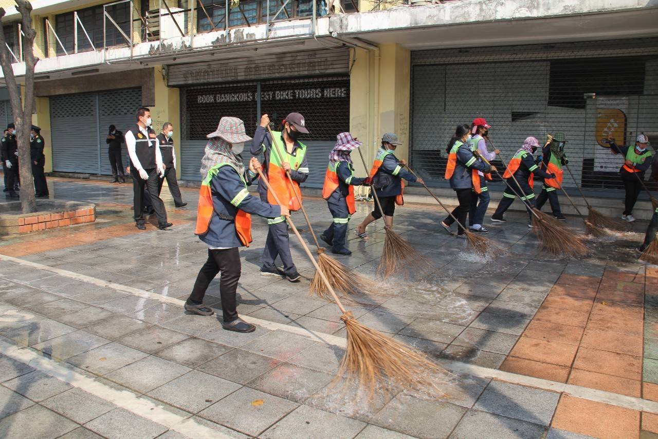 สำนักงานเขตพระนคร ร่วมกับ สน.ชนะสงคราม ตั้งด่านจุดตรวจกวดขันรถยนต์รถบรรทุกป้องกันปัญหาฝุ่น PM 2.5 พร้อมทั้ง ทำความสะอาดพื้นทางเดิน และ ประชาสัมพันธ์การป้องกันเชื้อ Covid-19 บริเวณถนนราชดำเนินกลาง.( มีคลิป )