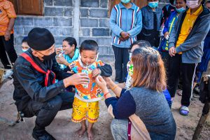 วันที่ 21 มกราคม 2564 เวลา 09.30 น. ที่อำเภอละหานทราย จ.บุรีรัมย์ ผู้สื่อข่าวลงพื้นที่รายงานว่า หน่วยเฉพาะกิจกรมทหารพรานที่ 26 โดย ร้อยเอก วิชัย กำเนิดเมือง นายทหารฝ่ายกิจการพลเรือนหน่วยเฉพาะกิจกรมทหารพรานที่ 26 ร่วมกับนางสาว สุพัฒรา วิรุณพันธุ์ ผู้อำนวยการโรงพยาบาลส่งเสริมสุขภาพตำบลบ้านสันติสุข และอาสาสมัครสาธารณสุขประจําหมู่บ้านสันติสุข ตำบลสำโรงใหม่ อำเภอละหานทราย ดำเนินการเดินเท้าเพื่อส่งความรักมอบความอบอุ่นใจแทนความห่วงใยจากกองทัพบก เป็นนมกล่อง จำนวน 40 โหล 10 ลัง รวมเป็นนมกล่อง จำนวน 480 กล่อง ให้กับเด็กๆ และ ศูนย์พัฒนาเด็กเล็กบ้าน สันติสุข หมู่ที่ 10 ตำบลสันติสุข อำเภอละหานทราย จังหวัดบุรีรัมย์ ที่ยากจนที่ได้รับผลกระทบจากการแพร่ระบาดของเชื้อไวรัส covid-19