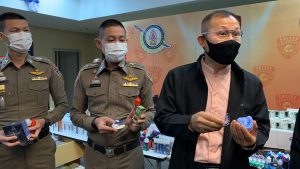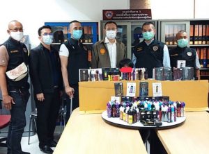 พ.ต.อ.ชนันนัทธ์ สารถวัลย์แพทศย์ รองผู้บังคับการปราบปรามการกระทำความผิดเกี่ยวกับการคุ้มครองผู้บริโภค และ พันตำรวจเอกประทีป เจริญกัลป์ เลขานุการกรมปฏิบัติหน้าที่ ผู้อำนวยการศูนย์ปฏิบัติการพิเศษ สำนักงานคณะกรรมการคุ้มครองผู้บริโภค แถลงผลระดมกวาดล้างจับกุมผู้ลักลอบจำหน่ายบุหรี่ไฟฟ้า และอุปกรณ์จัดฟันแฟชั่นที่ไม่ได้มาตรฐาน ในเป้าหมาย 15 จุด ระหว่างวันที่ 7 ถึง 26 มกราคม 2564 ที่ผ่านมา
