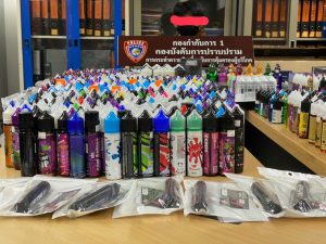 สำหรับคดีลอบขายบุหรี่ไฟฟ้า จับกุมผู้ต้องหาได้ทั้งหมด 11 คน มีในพื้นที่กรุงเทพมหานคร 5 คน,ปทุมธานี 4 คน,สระแก้ว 1 คน และนครปฐม 1 คน ยึดของกลางเป็นบุหรี่ไฟฟ้า,น้ำยาสำหรับเติมบุหรี่ไฟฟ้า,หัวพอทสำหรับเติมน้ำยาบุหรี่ไฟฟ้า กว่า 5,000 ชิ้น รวมมูลค่าประมาณ 3 ล้านบาท จึงแจ้งข้อหา ฝ่าฝืนคำสั่งคณะกรรมการคุ้มครองผู้บริโภคซึ่งห้ามขาย หรือห้ามให้บริการบารากู่ บารากู่ไฟฟ้า หรือบุหรี่ไฟฟ้าหรือตัวยาบารากู่ น้ำยาสำหรับเติมบารากู่ไฟฟ้า หรือบุหรี่ไฟฟ้า ตาม พ.ร.บ.คุ้มครองผู้บริโภค พ.ศ.2522