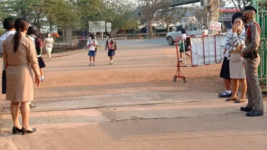 นายพรชัย ไพรหาญ ผอ. กล่าวว่า วันนี้โรงเรียนเปิดเทอมวันแรกทางโรงเรียนได้ตั้งจุดคัดกรองอย่างเข้มงวดครูและนักเรียนต้องสวมใส่แมสทุกคน คอยดูแลนักเรียนให้เว้นระยะห่างเป็นอย่างดี เพื่อป้องกันการแพร่ระบาดเชื้อไวรัสโควิด-19 ที่อาจจะแพร่ระบาดได้ตลอดเวลาถ้าไม่มีการป้องกันที่ดี..