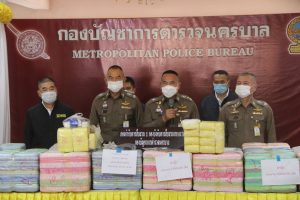 วันที่ 2 ก.พ.64 เวลา 10.30 น. ณ ลานแถลงข่าว ชั้น1 อาคาร บช.น. : พล.ต.ท.ภัคพงศ์ พงษ์เภตรา ผบช.น. พร้อมด้วย พล.ต.ต.จิรพัฒน์ ภูมิจิตร,พล.ต.ต.พีระพงศ์ วงษ์สมาน รอง ผบช.น.,พล.ต.ต.สันติ ชัยนิรามัย ผบก.สส.บช.น. และเจ้าหน้าที่ชุดสืบสวน กก.สส.2 บก.สส.บช.น. ร่วมแถลงข่าวผลกุมการจับยาเสพติดให้โทษประเภท 1 (ยาบ้า) จำนวน 2,000,000 เม็ด