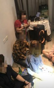 กระทั่งต่อมาเมื่อวันที่ 3 ก.พ.64 เวลาประมาณ 01.30 น. เจ้าหน้าที่ตำรวจชุดฝ่ายสืบสวนสน.ทองหล่อ ได้ออกตรวจเพื่อเฝ้าระวังบ้านหลังดังกล่าว ที่เกิดเหตุ เมื่อไปถึงพบว่าด้านในมีการเปิดเพลงส่งเสียงดัง และมีไฟแสงสี จึงเฝ้าสังเกตการณ์ กระทั่งเห็นคนเดินเข้าไปภายในบ้านหลังดังกล่าวหลายคน จึงเข้าทำการตรวจสอบ ตามมาตรการเฝ้าระวังการแพร่ระบาดโควิด-19 เมื่อเข้าไปภายใน พบกลุ่มชายหญิง จำนวน 10 คน กำลังนั่งดื่มสุรา พร้อมเปิดเพลง กันอย่างสนุกสนาน โดยไม่มีการป้องกันโรคโควิด-19 แต่อย่างใด จึงแสดงตัวเป็นเจ้าหน้าที่ตำรวจเข้าควบคุมกลุ่มบุคคลดังกล่าวตามประกาศคณะกรรมการควบคุมโรคติดต่อฯ