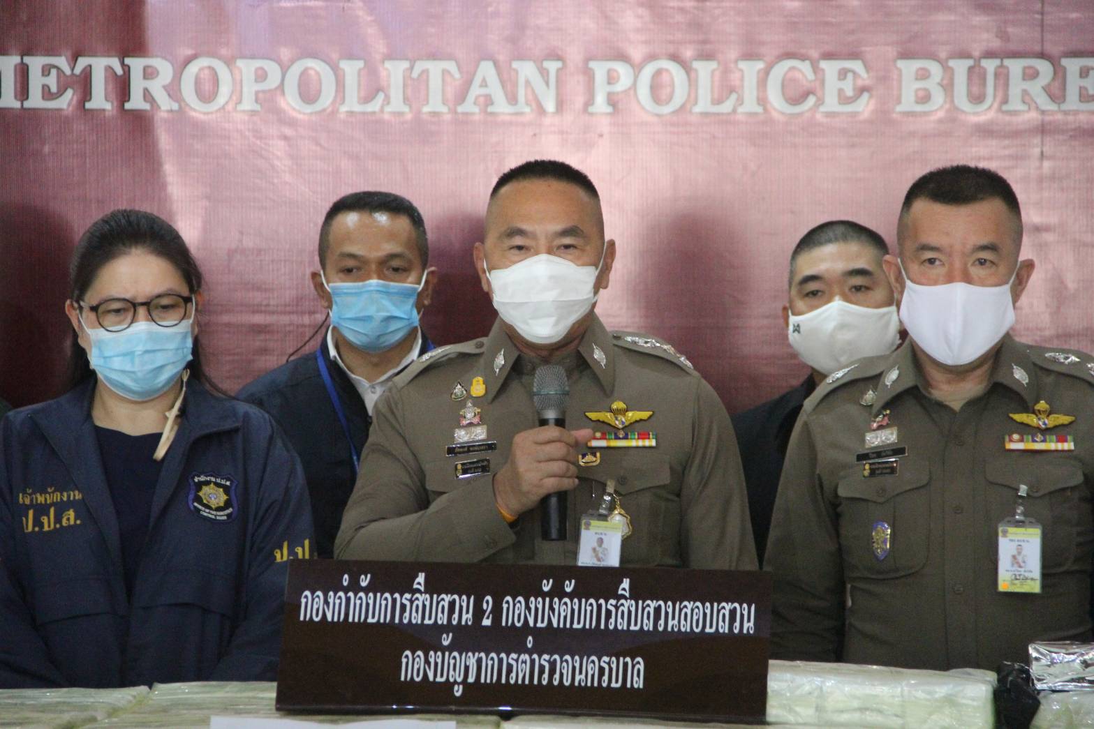 พล.ต.ท.ภัคพงศ์ พงษ์เภตรา ผบช.น. พร้อมด้วย พล.ต.ต.ปิยะ ต๊ะวิชัย รอง ผบช.น. , พล.ต.ต.สำราญ นวลมา รอง ผบช.น. , พล.ต.ต.สันติ ชัยนิรามัย ผบก.สส.บช.น. , พล.ต.ต.โสภณ สารพัฒน์ ผบก.น.5 , พล.ต.ต.โชคชัย งามวงศ์ ผบก.น.8 , ผู้แทน ปปส.กทม. ร่วมแถลงข่าว บก.สส.บช.น. จับกุมเฮโรอีน จำนวน 420 กก. , สน.ทองหล่อ จับกุมพ่อค้ายาเสพติดผ่านแอปเทเรแกรมกว่า 16 ปี วางขายย่านเอกมัย และ บก.น.8 จับกุมเครือข่ายแก๊งลักรถจักรยานยนต์กว่า 3 ปี