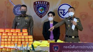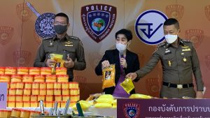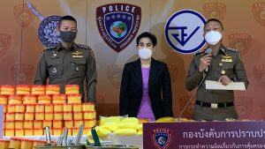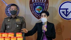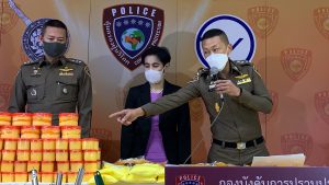 วันที่ 4 ก.พ.64 เวลา 10.00 น. ที่กองบังคับการปราบปรามการกระทำผิดเกี่ยวกับการคุ้มครองผู้บริโภค (บก.ปคบ.) : พ.ต.อ.ศรีศักดิ์ คัมภีรญาณ รอง ผบก.ปคบ. พร้อมด้วย พ.ต.อ.เนติ วงษ์กุหลาบ ผกก.4 บก.ปคบ. และ เภสัชกรหญิงสุภัทรา บุญเสริม รองเลขาธิการคณะกรรมการอาหารและยา (อย.) ร่วมแถลงข่าวผลการทลายแหล่งผลิตและจำหน่ายครีมเถื่อนรายใหญ่ 4 จังหวัด ได้แก่ ฉะเชิงเทรา,สระแก้ว,ชลบุรี และ พระนครศรีอยุธยา รวมมูลค่าของกลางกว่า 5 แสนบาท