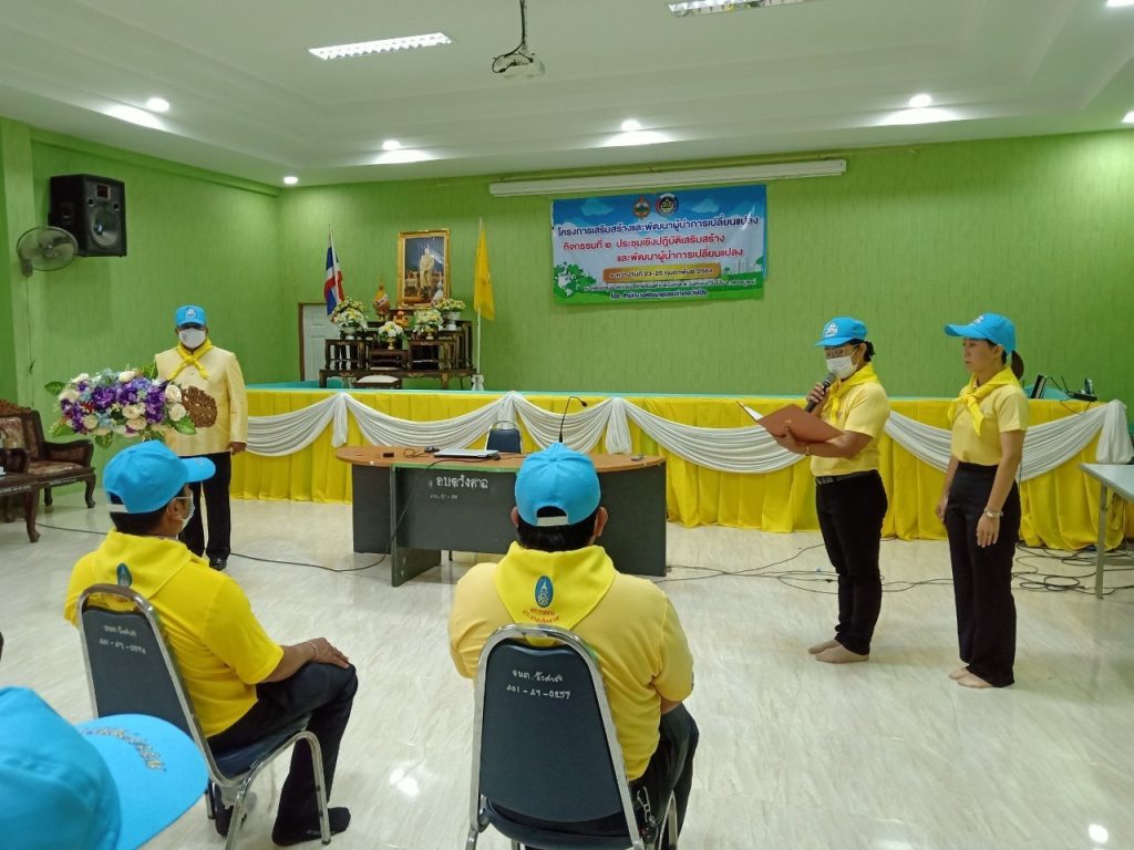 เมื่อวันที่ 23 กุมภาพันธ์ 2564 หอประชุมองค์การบริหารส่วนตำบลวังศาล สำนักงานพัฒนาชุมชนอำเภอวังโป่ง ได้ดำเนินกิจกรรมโครงการเสริมสร้างและพัฒนาผู้นำการเปลี่ยนแปลง ระหว่างวันที่ 23 – 25 ก.พ.2564โดยให้ตำบลวังศาลเป็นตำบลนำร่องมีผู้นำร่วมกิจกรรมประกอบด้วยกำนัน ผู้ใหญ่บ้าน 12 หมู่บ้าน สมาชิก อบต. 1 คน และผู้นำอาสาพัฒนาชุมชน 2 คน