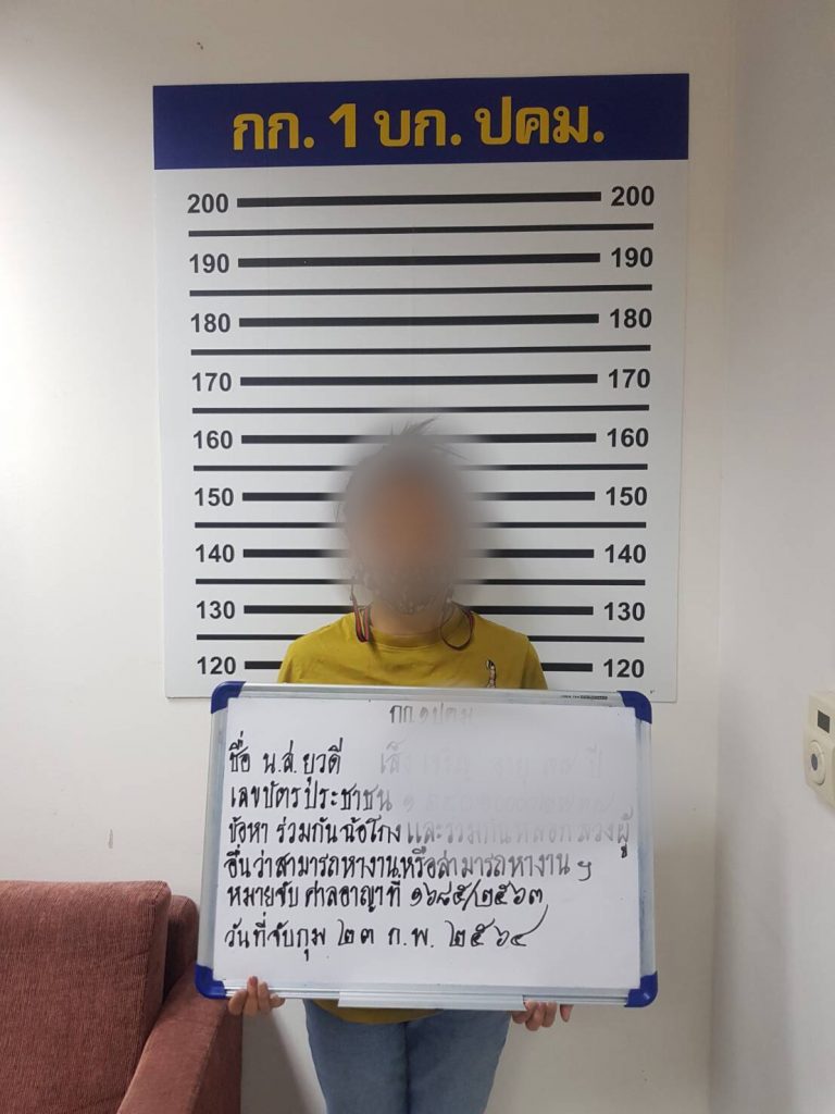 โดยกล่าวหาว่า “กระทำความผิดฐาน ร่วมกันฉ้อโกง และร่วมกันหลอกลวงผู้อื่นว่าสามารถหางานหรือสามารถจัดส่งไปฝึกงานในต่างประเทศได้และโดยการหลอกลวงดังว่านั้นได้ไปซึ่งทรัพย์สินหรือประโยชน์อื่นใดจากผู้ถูกหลอกลวง” จากการตรวจสอบประวัติของ น.ส.ยุวดีฯ พบว่ามีหมายจับค้างเก่า ดังนี้คือ หมายจับศาลอาญา ที่ 1115/2563 ลงวันที่ 24 กรกฎาคม 2563 (กก.2 บก.ปคม.),หมายจับศาลอาญา ที่ 1853/2561 ลงวันที่ 21 สิงหาคม 2561 กก.3 บก.ปคม.,หมายจับศาลอาญา ที่ 1283/2561 ลงวันที่ 15 มิถุนายน 2561 กก.5 บก.ปคม.,หมายจับศาลจังหวัดชุมแพ ที่ จ.60/2561 ลงวันที่ 18 มิถุนายน 2561 สภ.ชุมแพ,หมายจับศาลจังหวัดกาฬสินธุ์ ที่ จ.17/2564 ลงวันที่ 22 มกราคม 2564 สภ.กุฉินารายณ์,หมายจับศาลจังหวัดนครราชสีมา ที่ 48/2560 ลงวันที่ 21 กันยายน 2560 สภ.บัวใหญ่” และเคยเป็นผู้ต้องหา กก.1 บก.ปคม.2 คดี “ในฐานความผิด หลอกลวงแรงงานไปทำงานในต่างประเทศ” ซึ่งปัจจุบันได้หนีการจับกุมตามคำพิพากษาศาลศาลอุทรณ์