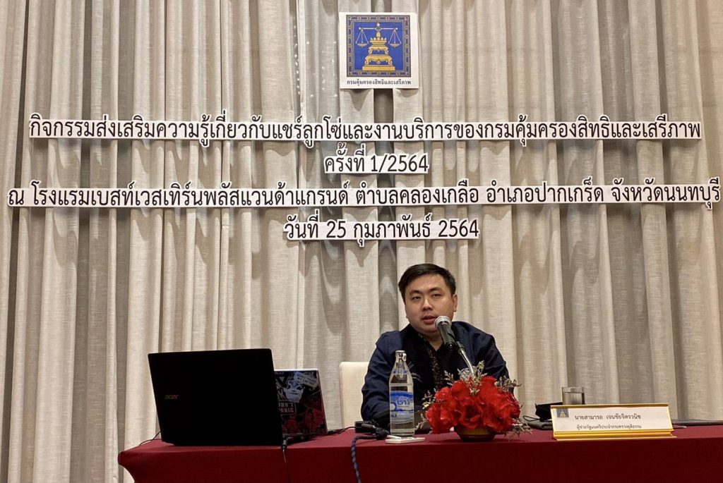 เมื่อวันที่ 25 กุมภาพันธ์ 2564 เวลา 11.00 น.นายสามารถ เจนชัยจิตรวนิช ผู้ช่วยรัฐมนตรีประจำกระทรวงยุติธรรม เป็นวิทยากรบรรยายให้ความรู้ใน กิจกรรมส่งเสริมความรู้เกี่ยวกับแชร์ลูกโซ่โรงแรมเบสเวสเทิร์น พลัส แวนด้า แกรนด์ ตำบลคลองเกลือ อำเภอปากเกร็ด จังหวัดนนทบุรี