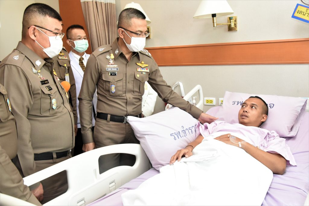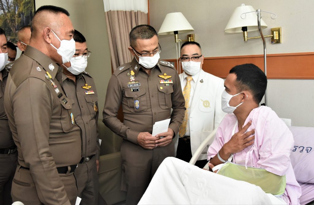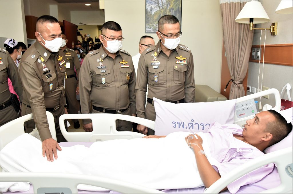 วันที่ 1 มีนาคม 2564 เวลา 14.30 น. ณ อาคารมหาภูมิพลราชานุสรณ์ 88 พรรษา โรงพยาบาลตำรวจ : พล.ต.อ.สุวัฒน์ แจ้งยอดสุข ผบ.ตร. เดินทางตรวจเยี่ยมข้าราชการตำรวจที่ได้รับบาดเจ็บจากการปฏิบัติหน้าที่ ในการดูแลรักษาความสงบเรียบร้อยของกลุ่มผู้ชุมนุม เมื่อวันที่ 28 ก.พ.64 ที่ผ่านมา โดยมี พล.ต.อ.ดำรงศักดิ์ กิตติประภัสร์ รอง ผบ.ตร.,พล.ต.ท.ภัคพงศ์ พงษ์เภตรา ผบช.น.,พล.ต.ท.โสภณรัชต์ สิงหจารุ พตร. และผู้เกี่ยวข้อง ร่วมตรวจเยี่ยม