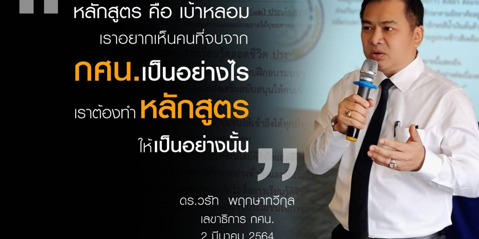 เมื่อวันที่ 2 มี.ค.64 : นายวรัท พฤกษาทวีกุล เลขาธิการ (กศน.) เปิดเผยถึงความคืบหน้าการปรับหลักสูตรการศึกษานอกระบบขั้นพื้นฐาน พ.ศ.2551เป็นหลักสูตรฐานสมรรถนะ ในการประชุมประชุมเชิงปฎิบัติการเพื่อวิเคราะห์กรอบสมรรถนะ คุณลักษณะของผู้เรียน และยกร่างโครงสร้างหลักสูตรการศึกษานอกระบบระดับการศึกษาขั้นพื้นฐาน ณ โรงแรมปิกนิก กรุงเทพฯ ที่จัดโดยกลุ่มพัฒนาคุณภาพและมาตรฐานการศึกษา สำนักงาน (กศน.) ว่า “ตนให้ความสำคัญกับเรื่องของ หลักสูตร เป็นอย่างมากเพราะหลักสูตร คือ เบ้าหลอม เราอยากเห็นคนที่จบจาก (กศน.) เป็นอย่างไร เราต้องทำหลักสูตรให้เป็นอย่างนั้น มีการวัดผลแบบใด วัดอย่างไร และประกาศใช้ให้ได้ หลักสูตรต้องมีการนำร่องการใช้หลักสูตร ต้องคำนึงถึงกฎหมาย”