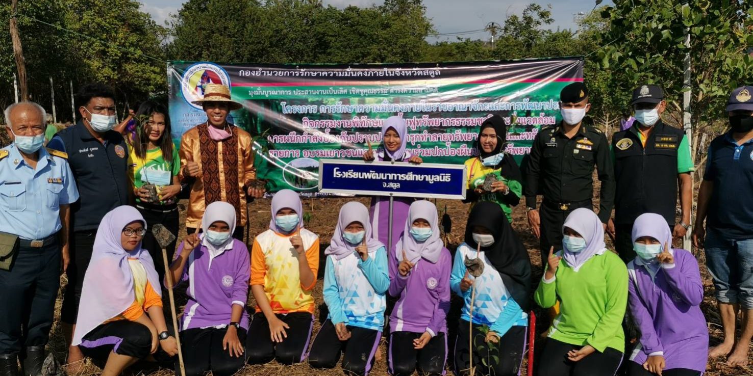 กอ.รมน.จังหวัดสตูลดำเนินการตามโครงการการรักษาความมั่นคงภายในราชอาณาจักรและการพัฒนาประเทศ กิจกรรมงานพิทักษ์และฟื้นฟูทรัพยากรธรรมชาติและสิ่งแวดล้อม การผนึกกำลังป้องกัน ปราบปรามบุกรุกทำลายทรัพยากรป่าไม้และทรัพยากรป่าพร้อมทั้งอบรมเยาวชนและประชาชนร่วมปกป้องผืนป่าและทรัพยากรธรรมชาติ ณ หอประชุม โรงเรียนพัฒนาการศึกษามูลนิธิ ต.คลองขุด อ.เมือง จ.สตูล โดยมีผู้อำนวยการสถานีพัฒนาทรัพยากร ป่าชายเลนที่ 24 (ตำมะลัง สตูล) เป็นประธานเปิดพิธี และร่วมปลูกป่าชายเลนในพื้นที่ดังกล่าวซึ่งมีกลุ่มเป้าหมายเป็นเยาวชนจากโรงเรียนพัฒนาการศึกษามูลนิธิ พื้นที่ อ.เมือง จ.สตูล เข้าร่วมกิจกรรม จำนวน 70 คน และได้รับการสนับสนุนชุดวิทยากรจาก สำนักงานสถานีพัฒนาทรัพยากรชายเลนที่ 24 (ตำมะลัง สตูล) มาบรรยายให้ความรู้กับเยาวชนกลุ่มเป้าหมาย ดังกล่าว ในเรื่องการผนึกกำลังป้องกันการบุกรุกทำลายทรัพยากรและทรัพยากรป่าไม้ พร้อมกันนี้ได้ร่วมกับกลุ่มภาคีเครือข่ายที่เกี่ยวข้อง ในพื้นที่ จ.สตูล ร่วมกันปลูกป่าชายเลน พื้นที่ หมู่ 3 ต.คลองขุด อ.เมือง จ.สตูล เนื้อที่จำนวน 2 – 2- 05 ไร่ โดยมี นายวิสิทธิ์ สุทธิสว่าง วันที่ 4 – 5 มีนาคม 2564