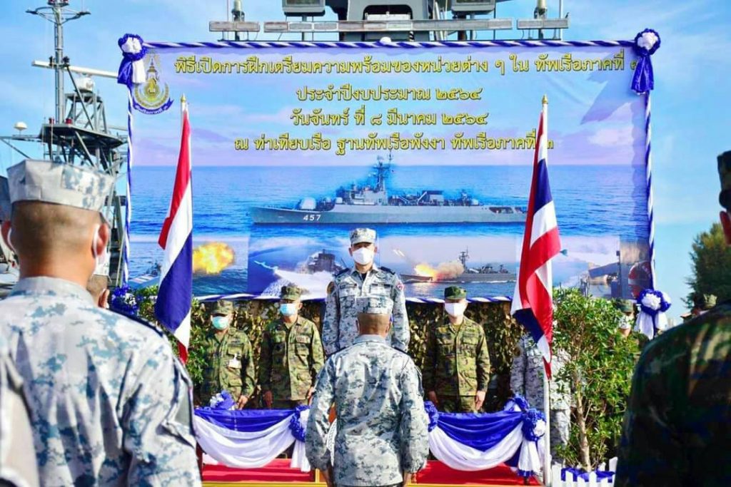 พลเรือโท เชิงชาย ชมเชิงแพทย์ ผู้บัญชาการทัพเรือภาคที่ 3 เป็นประธานในพิธีเปิดการฝึกเตรียมความพร้อมของของหน่วยต่าง ๆ ในพื้นที่ทัพเรือภาคที่ 3 ประจำปีงบประมาณ 2564 ณ บริเวณท้ายเรือหลวงกระบุรี ท่าเทียบเรือ ฐานทัพเรือพังงา ทัพเรือภาคที่ 3