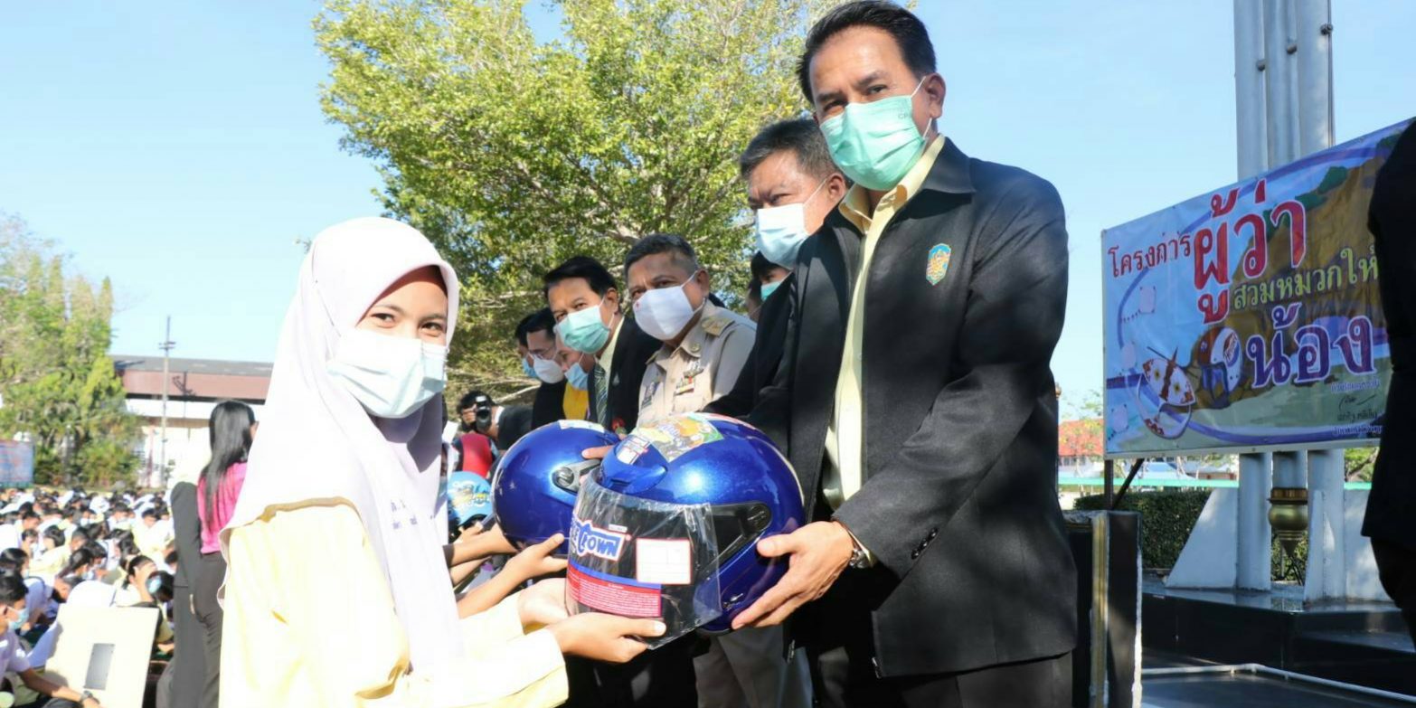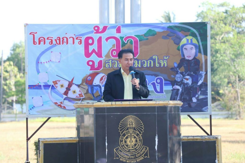 นายเอกรัฐ หลีเส็น ผู้ว่าราชการจังหวัดสตูล กล่าวว่า สำหรับการมอบหมวกนิรภัยให้น้องนักเรียนในวันนี้ เพื่อต้องการนำหมวกนิรภัยที่ได้รับการสนับสนุนจากหน่วยงานราชการ รัฐวิสาหกิจ และภาคเอกชน นำไปส่งต่อให้แก่นักเรียนที่ฐานะยากจน ไม่สามารถจัดซื้อหมวกนิรภัยด้วยตนเอง แต่จำเป็นจะต้องใช้รถจักรยานยนต์เป็นพาหนะในชีวิตประจำวัน เช่น การเดินทางมาโรงเรียนหรือต้องใช้รถจักรยานยนต์สำหรับอำนวยความสะดวกภายในครอบครัว ดังนั้น เพื่อเป็นการลดผลกระทบต่อศีรษะจากการเกิดอุบัติเหตุในการใช้รถใช้ถนน โดยเฉพาะในเยาวชน หมวกนิรภัยที่ได้ไปจะช่วยส่งเสริมความปลอดภัยให้ทุกคนที่ใช้รถใช้ถนนได้ และขอให้น้องนักเรียนระมัดระวังในการใช้รถใช้ถนน เคารพกฎจราจร เดินทางด้วยความปลอดภัยไม่ประมาท