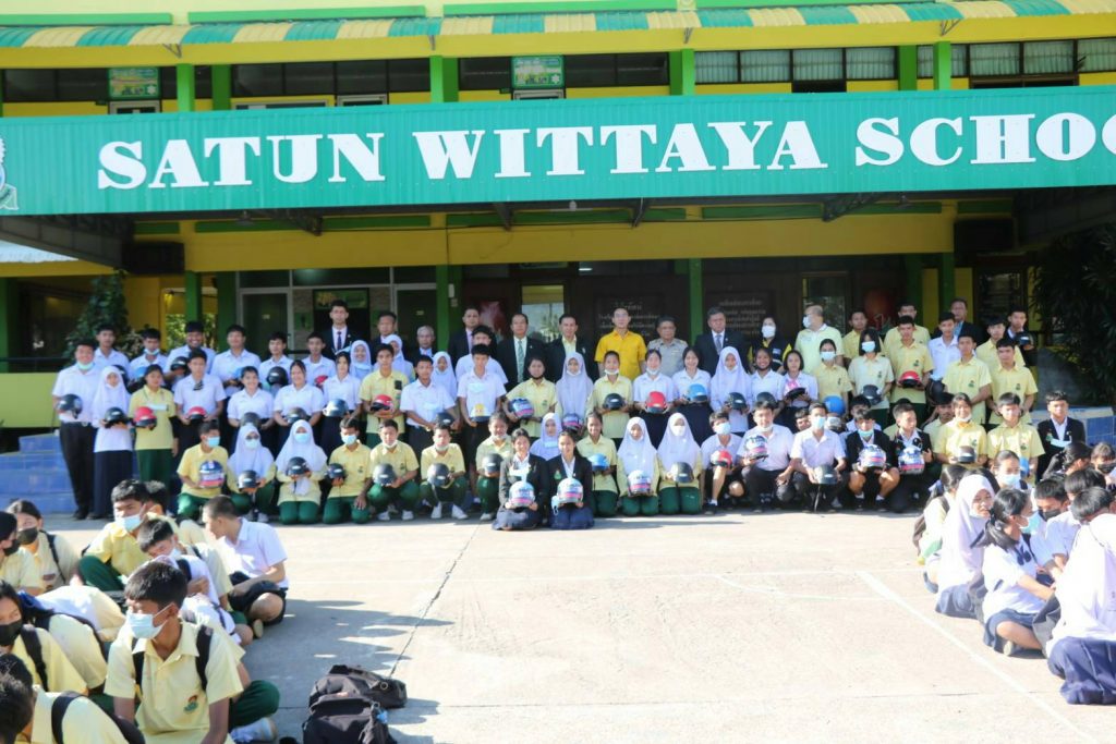 สำหรับการส่งมอบหมวกนิรภัยให้นักเรียนนั้น กำหนดส่งมอบให้แก่นักเรียนในพื้นที่จังหวัดสตูล รวม 87 โรงเรียน รวม 1,201 คน ซึ่งขณะนี้ ได้รับการสนับสนุนหมวกนิรภัยแล้วจำนวน 1,398 ใบ โดยผู้ว่าราชการจังหวัดสตูลหรือรองผู้ว่าราชการจังหวัดสตูล , นายอำเภอ , ผู้บริหารส่วนราชการในจังหวัด จะเดินทางไปมอบให้แก่นักเรียนในสถานศึกษาในช่วงกิจกรรมหน้าเสาธง โดยเน้นสถานศึกษาที่มีระดับชั้นมัธยมศึกษา , อาชีวะศึกษา และ กศน. ภายในเดือนมีนาคมนี้