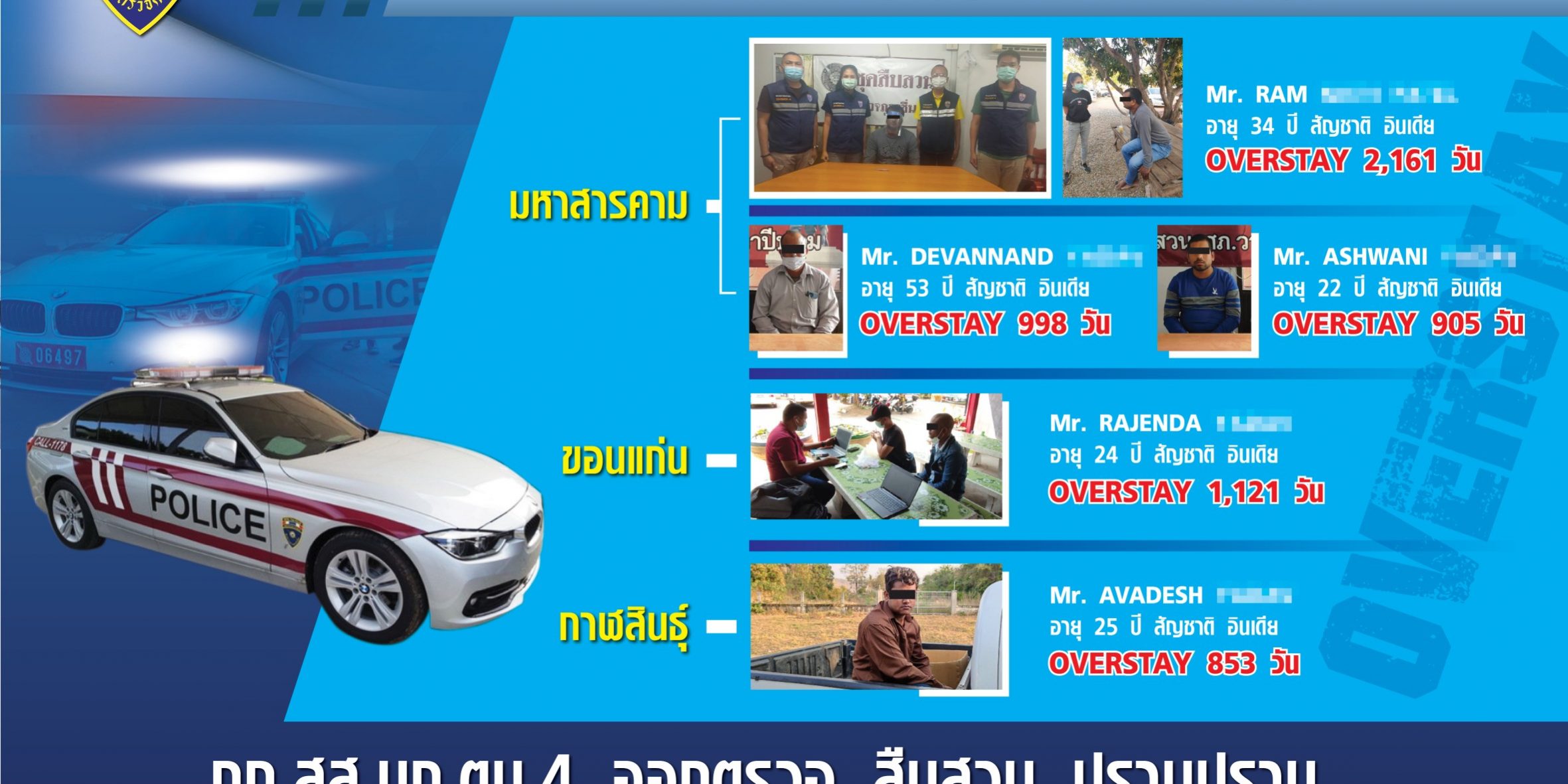 4.MR.RAJENDA อายุ 24 ปี สัญชาติ อินเดีย ข้อหาเป็นบุคคลต่างด้าวอยู่ในราชอาณาจักรเกินกว่าที่ได้รับอนุญาต (overstay) จำนวน 1,121 วัน จับกุมได้ที่จังหวัดขอนแก่น