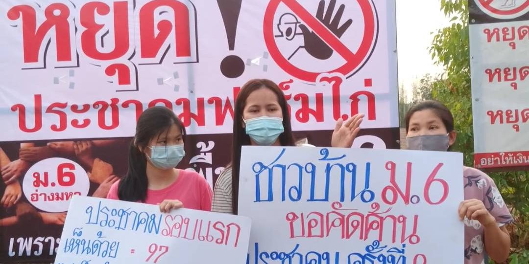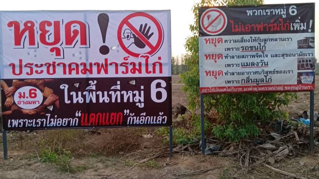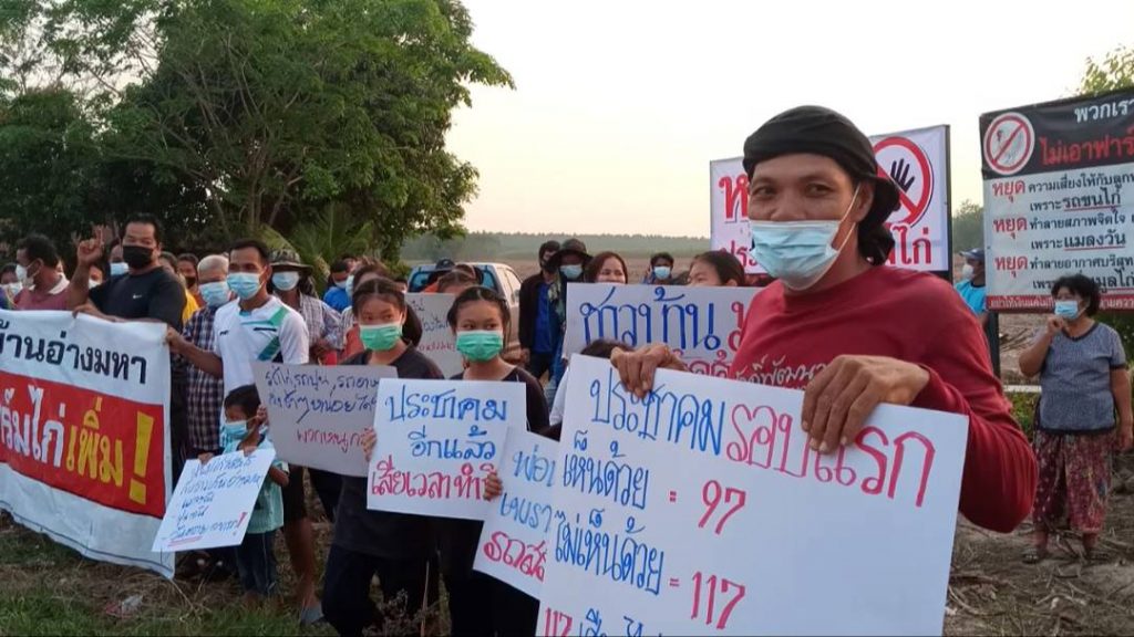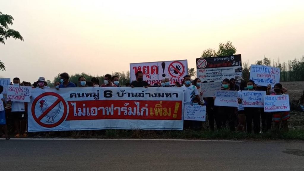 เมื่อเวลา 17.00 น.วันที่14 มีค.64 ที่บ้านอ่างมหา ม.6 ต.ลาดตะเคียน อ.กบินทร์บุรี จ.ปราจีนบุรี รวมตัวกันติดตั้งป้ายคัดค้านการประชาคมฟาร์มไก่ ชาวบ้านเกรงจะได้รับผลกระทบเพิ่มขึ้นที่ผ่านมาผู้ประกอบการเลี้ยงไก่เนื้อในหมู่บ้านได้ขอประชาคมสร้างฟาร์มไก่มากกว่า 100 โรงเรือน และจะขอสร้างเพิ่มอีก 10 โรงเรือน ที่ผ่านมาผลกระทบทั้งกลิ่นและแมลงวันไม่สามารถแก้ไขได้ตามที่รับปากว่าหากมีการประชาคมแล้วจะป้องกันปัญหาต่างๆที่จะเกิดขึ้น การจับไก่แต่ละครั้งเกิดปัญหาทั้งกลิ่นแมลงวันรวมถึงรถบรรทุกไก่วิ่งเข้าออกในหมู่บ้านด้วยความเร็วเกิดอุบัติเหตุบ่อยครั้ง มีผู้ได้รับบาดเจ็บจากถูกเฉี่ยวชนก็มีชาวบ้านเกรงว่าจะก่อให้เกิดปัญหาตามขึ้นมาอีก ปีที่แล้วผู้ประกอบการเลี้ยงไก่เนื้อขอประชาคมเพื่อจะสร้างความไก่เนื้อในหมู่บ้านเพิ่มโดยขอประชาคมมีตัวแทนอำเภอและหน่วยงานที่เกี่ยวข้องร่วมสังเกตการณ์ ผลการลงมติประชาคมเห็นด้วยให้สร้างฟาร์มไก่ 97 เสียง ไม่เห็นด้วยที่จะให้สร้างฟาร์มไก่ 177 เสียงครั้งนี้ชาวบ้านทราบว่าผู้ประกอบการจะประชาคมเพื่อสร้างฟาร์มไก่ขึ้นในหมู่บ้าน นายเดชา ไผ่แดง ตัวแทนชาวบ้านหมู่ 6 กล่าวว่า การที่ชาวบ้านรวมตัวกันออกมาติดป้ายเพื่อคัดค้านประชาคมฟาร์มไก่ที่อาจจะเกิดขึ้นภายในเดือนนี้ อยากให้ผู้ประกอบการที่จะขอประชาคมสร้างฟาร์มไก่เคารพมติพี่ไม่เห็นด้วยที่จะให้สร้างฟาร์มไก่ในพื้นที่เมื่อปีที่แล้วด้วย อยากให้ผู้ประกอบการตระหนักถึงปัญหาที่เกิดขึ้น ผู้ประกอบการและชาวบ้านต่างรู้ถึงผลกระทบที่เกิดขึ้นกันดีว่ามันมากเกินที่จะรับได้แล้ว นส.ออย นามสมมุติขอสงวนชื่อนามสกุล กล่าวว่า ชาวบ้าน ม.6 ไม่ต้องการให้ผู้ประกอบการสร้างฟาร์มไก่เพิ่มขึ้นในหมู่บ้านอีก อยากให้นึกถึงชาวบ้านและเด็กๆในหมู่บ้านจะต้องทนดมกลิ่น