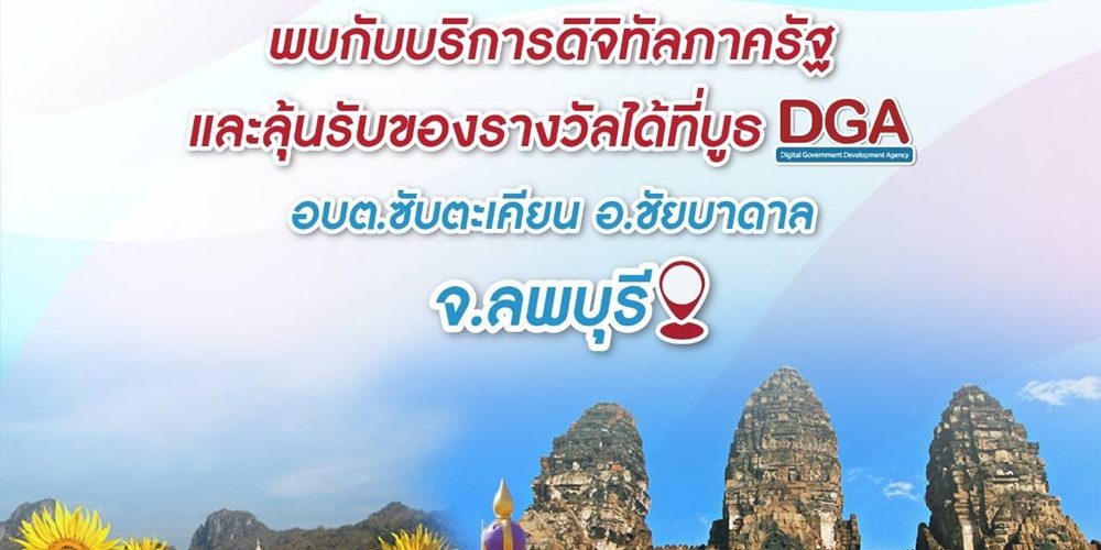 สำนักงานพัฒนารัฐบาลดิจิทัล (องค์การมหาชน) (สพร.) หรือ DGA ขอเชิญผู้สนใจเข้าร่วมงาน โครงการ หน่วยบำบัดทุกข์ บำรุงสุข สร้างรอยยิ้ม ให้ประชาชน จังหวัดลพบุรี ประจำปี พ.ศ. 2564 ในวันที่ 17 มีนาคม 2564 เวลา 09.00 -12.00 น. ณ องค์การบริหารส่วนตำบลซับตะเคียน ตำบลซับตะเคียน อำเภอชัยบาดาล จังหวัดลพบุรี เพื่อเป็นการพบปะระหว่างผู้บริหารของจังหวัดกับประชาชน เพื่อสร้างความเข้าใจ และความร่วมมืออันดีระหว่างกัน ตลอดจนรับฟังปัญหาความเดือดร้อนและความต้องการของประชาชน เพื่อให้หน่วยงานที่เกี่ยวข้องสามารถแก้ไขปัญหาได้อย่างรวดเร็วและมีประสิทธิภาพมากขึ้น