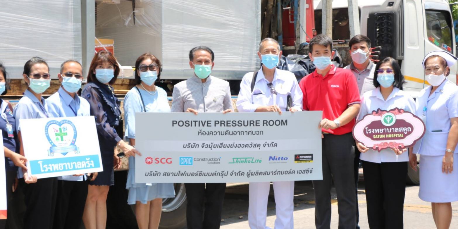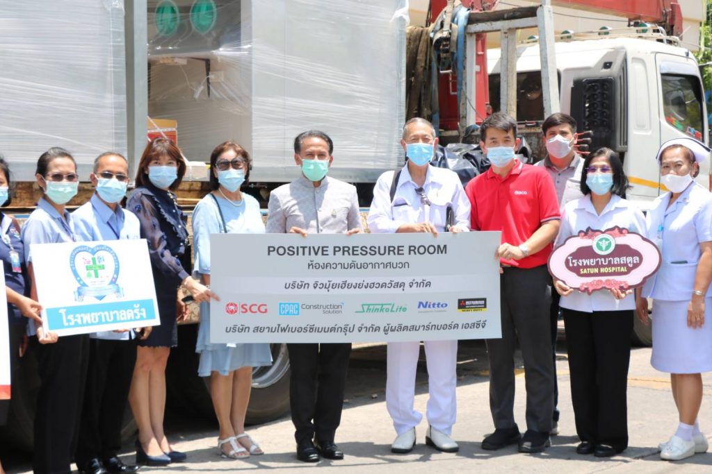 วันนี้ 18 ,uok8, 2564 ที่อาคารผู้ป่วยใหม่ 100 ปี โรงพยาบาลสตูล อำเภอเมืองสตูล จังหวัดสตูล นายเอกรัฐ หลีเส็น ผู้ว่าราชการจังหวัดสตูล เป็นประธานรับมอบห้องความดันอากาศบวก (Positive Pressure Room) จากนายยงยุทธ สุสมากุลวงศ์ กรรมการผู้จัดการบริษัทย่งฮวดวัสดุก่อสร้าง จังหวัดยะลา พร้อมด้วยตัวแทนจากบริษัทสยามไฟเบอร์ซีเมนต์กรุ๊ปและซีแพคโซลูชั่น ในเครือ SCG จำนวน 2 ห้อง โดยส่งต่อให้แก่โรงพยาบาลสตูล และโรงพยาบาลตรัง เพื่อช่วยลดความเสี่ยงจากการติดเชื้อโควิด 19 และโรคติดเชื้อทางเดินหายใจให้กับบุคลากรทางการแพทย์ขณะปฏิบัติหน้าที่ ซึ่งผู้เชี่ยวชาญจาก SCG ได้นำเสนอหลักการใช้งาน ระบบควบคุมแรงดันและคุณภาพอากาศที่เหมาะสมอีกด้วย