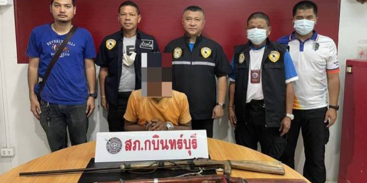 2.นาย ประมวล ขอสงวนนามสกุล อายุ 42 ปี อยู่บ้านเลขที่ 34 ม.4 ต.ทับช้าง อ.สอยดาว จ.จันทบุรี ข้อหา มีอาวุธปืนไว้ในความครอบครองโดยผิดกฎหมาย ของกลาง อาวุธปืน (ปืนดินดำ) จำนวน 1 กระบอก