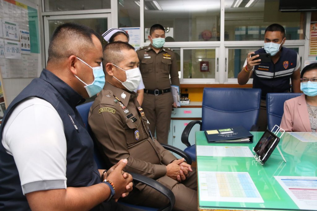 จากนั้น พล.ต.ท.สมพงษ์ฯ พร้อมด้วย นพ.โสภณ เอี่ยมศิริถาวร รองอธิบดีกรมควบคุมโรค และ หน่วยงานที่เกี่ยวข้องร่วมแถลงความคืบหน้าแผนการ ที่เกี่ยวกับการรับมือจากสถานการณ์การแพร่ระบาดเชื้อโควิด-19 และมีมาตราการในการป้องกันการแพร่ระบาดของเชื้อโควิด-19 ในห้องกักบางเขนและสวนพลูของ สตม.และการจัดตั้ง รพ.สนามชั่วคราวเพื่อรองรับผู้ต้องกักที่ตรวจพบเชื้อ เบื้องต้น ผู้ต้องกักต่างชาติมีจำนวน 1,615 คน อยู่ที่สถานกักตม.บางเขน 490 คน และตม.สวนพลู 1,125 คน มีผู้ติดเชื้อโควิด-19 อยู่ในความดูแล 393 ราย เป็นชาย 370 หญิง 23 ราย ในจำนวนนี้มีตำรวจปฎิบัติหน้าที่ดูแลผู้ต้องกักติดโควิด-19 จำนวน 1 นาย ได้ส่งไปรักษาตัวที่ รพ.ตำรวจแล้ว และสตม.ร่วมกับ รพ.ตำรวจ,กระทรวงสาธารณสุข,กรมควบคุม และกทม.จัดตั้งโรงพยาบาลสนามชั่วคราวขึ้นอีกแห่ง โดยใช้อาคารโรงยิมกองสวัสดิการ สนามบุญยะจินดา สโมสรตำรวจ