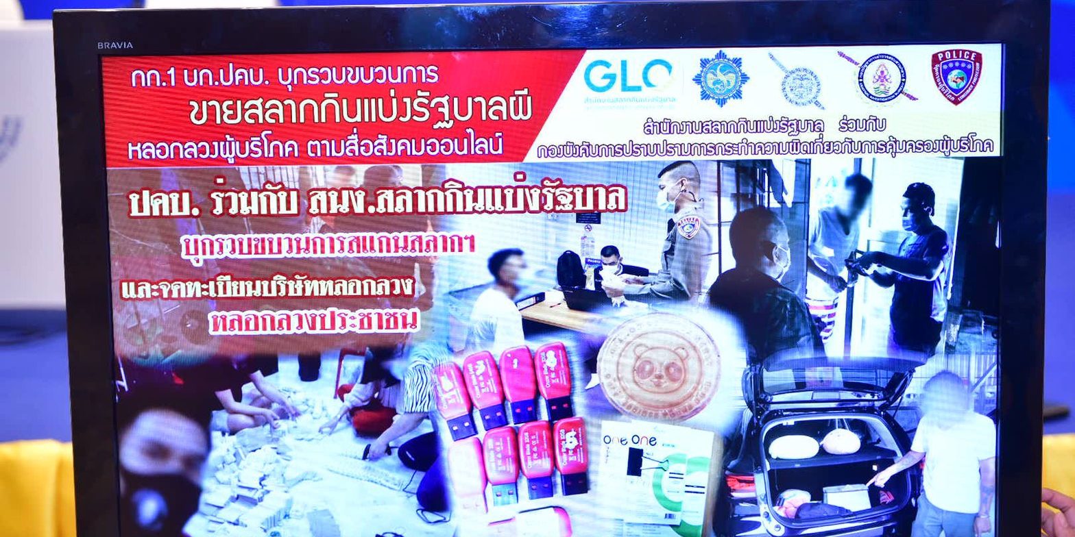 โดย บก.ปคบ.ร่วมกับสำนักงานสลากกินแบ่งรัฐบาลได้ร่วมกันสืบสวนกรณี บริษัท แพนด้า ลอตเตอรี่ จำกัด กับพวก ได้สร้างแพลตฟอร์มชื่อแพนด้า ลอตเตอรี่ (Panda Lottery) ผ่านทางเว็บไซต์ url: https://pdlotto.com/ ซึ่งประชาชนทั่วไปสามารถเข้าถึงได้ มีวัตถุประสงค์เพื่อหลอกลวงขายสลากกินแบ่งรัฐบาลให้กับบุคคลทั่วไป โดยนำภาพสลากฯ หมายเลขต่างๆ ที่มีการแสกนบันทึกเก็บไว้ในระบบคอมพิวเตอร์ มาเสนอขายผ่านแพลตฟอร์มดังกล่าว โดยใช้ตัวแทนนายหน้า หรือบุคคลต่างๆ เป็นผู้โฆษณาหาลูกค้ามาซื้อสลากฯ เมื่อลูกค้าเลือกซื้อสลากฯ แล้ว บริษัท แพนด้า ลอตเตอรี่ จำกัด มิได้ส่งมอบ สลากฯ ฉบับจริงให้ลูกค้า เพื่อทำการตรวจสอบ และเก็บรักษา แต่อย่างใด