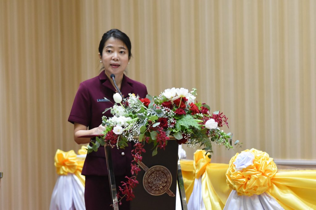 โดยมี คุณ รัตนาภรณ์ สีวลีพันธ์ นายกสมาคมแม่บ้านตำรวจ ได้กล่าวรายงานก่อนพิธีมอบทุนการศึกษาดังกล่าว