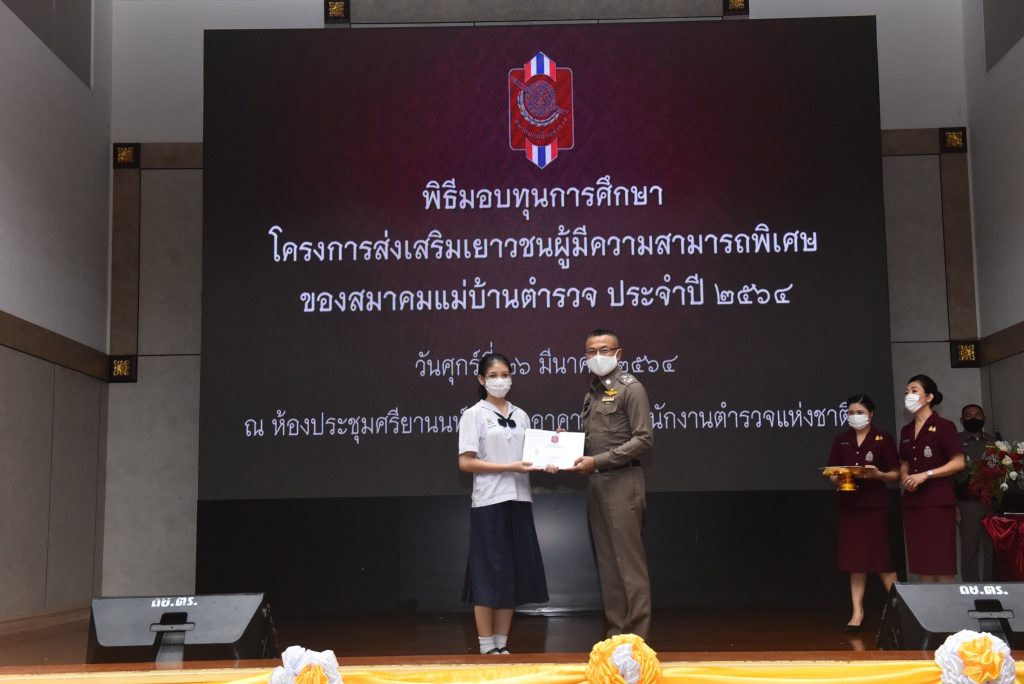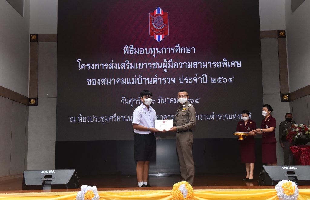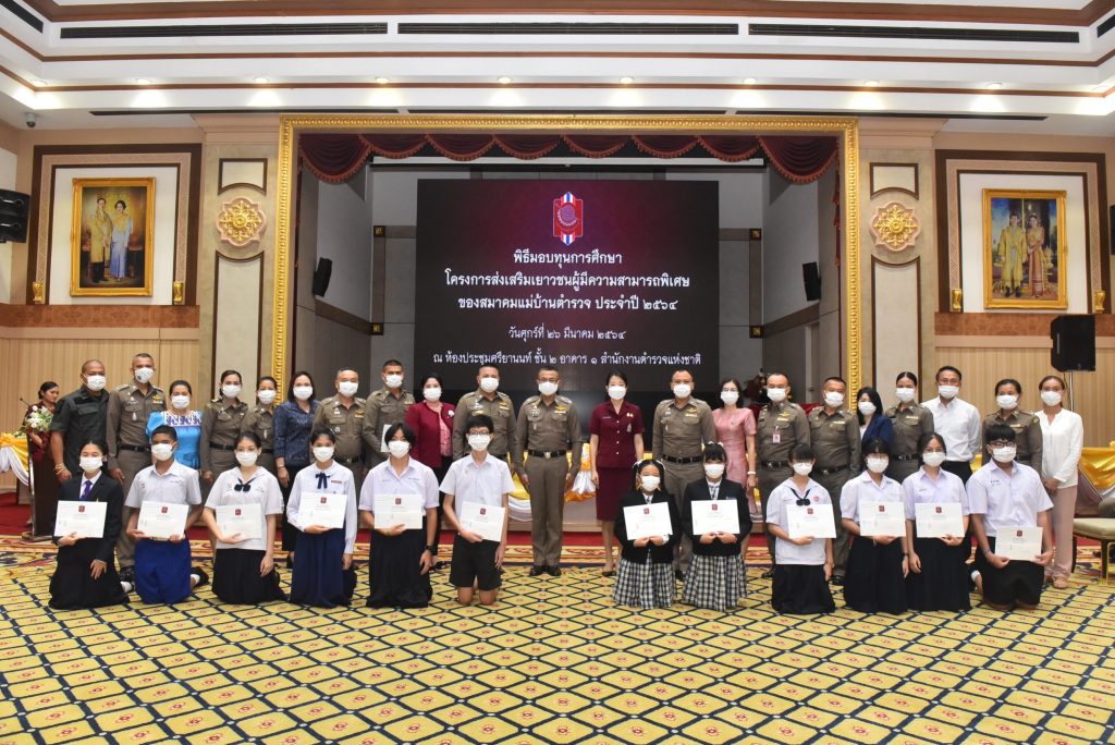 เมื่อวันที่ 26 มีนาคม 2564 เวลา 11.00 น. ณ ห้องประชุมศรียานนท์ สำนักงานตำรวจแห่งชาติ : พล.ต.อ.สุวัฒน์ แจ้งยอดสุข ผู้บัญชาการตำรวจแห่งชาติ เป็นประธานการมอบทุนการศึกษาแก่บุตรข้าราชการตำรวจที่มีความสามารถพิเศษด้านวิชาการ,ดนตรี,กีฬา และศีลธรรม คุณธรรม จริยธรรม มีทุนการศึกษาจำนวน 12 ทุนๆละ 10,000 บาท