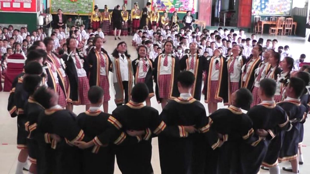 จากนั้นในช่วงท้ายกิจกรรม ก็ได้มีการแสดงชุด “ฟ้อนรำบายศรีสู่ขวัญ” โดยนักเรียนชั้นประถมศึกษาปีที่ 6 ที่นำพานบายศรีเข้ามาสู่บริเวณพิธี เพื่อมอบให้ผู้อำนวยการโรงเรียน , คณะครู ตลอดจนผู้ปกครอง ทำพิธีบายศรีสู่ขวัญ เพื่อความเป็นศิริมงคลและขวัญกำลังใจแก่นักเรียนที่จบการศึกษา ซึ่งบรรยากาศ ต่างเป็นไปด้วยความอบอุ่น