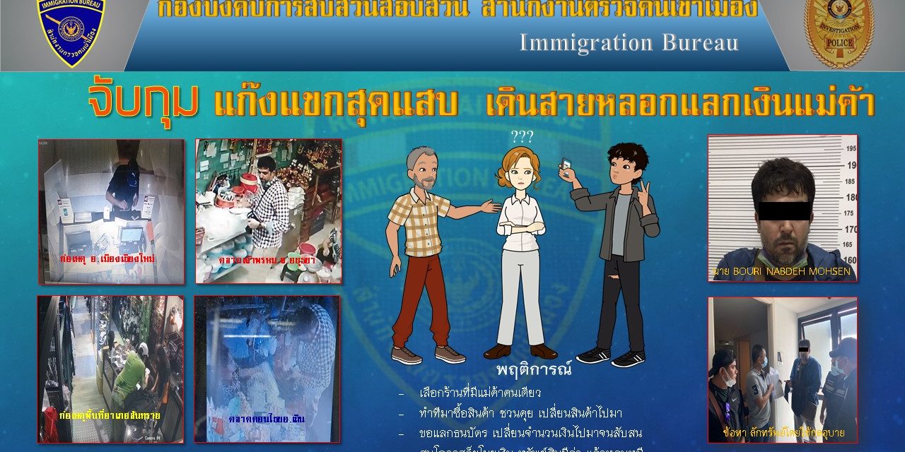 วันที่ 2 เม.ย.64 เวลา 10.30 น.ณ ห้องอเนกประสงค์ ชั้น 1 อาคาร 1 สตม.(สวนพลู) แขวงทุ่งมหาเมฆ เขตสาทร กทม. : พล.ต.ท.สมพงษ์ ชิงดวง ผบช.สตม. พร้อมด้วยพล.ต.ต.อาชยน ไกรทอง,พล.ต.ต.ศิลปคมณ์ เอี่ยมวงศ์ รอง ผบช.สตม.,พล.ต.ต.พันธนะ นุชนารถ ผบก.สส.สตม.,พ.ต.อ.สถิตย์ พรมอุทัย,พ.ต.อ.อาภากร โกมลสุทธิ รอง ผบก.สส.สตม. และ พ.ต.อ.ปฏิญญา จีรชนาสิน ผกก.2 บก.สส.สตม. ร่วมแถลงข่าวผลการจับกุมชาวต่างชาติแสบ ทำทีมาขอซื้อของ-แลกธนบัตร โดยมีรายละเอียด ดังนี้