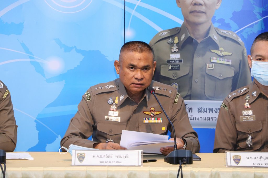 วันที่ 2 เม.ย.64 เวลา 10.30 น.ณ ห้องอเนกประสงค์ ชั้น 1 อาคาร 1 สตม.(สวนพลู) แขวงทุ่งมหาเมฆ เขตสาทร กทม. : พล.ต.ท.สมพงษ์ ชิงดวง ผบช.สตม.พร้อมด้วย พล.ต.ต.อาชยน ไกรทอง รอง ผบช.สตม.,พล.ต.ต.พันธนะ นุชนารถ ผบก.สส.สตม.,พ.ต.อ.สถิตย์ พรมอุทัย,พ.ต.อ.อภิมุข กานตยากร รอง ผบก.สส.สตม.,ว่าที่ พ.ต.อ.ณภัทรพงศ์ สุภาพรผกก.กก.ปอพ.บก.สส.สตม.,พ.ต.อ.สุรศักดิ์ สุรินทร์แก้ว ผกก.กก.3 บก.สส.สตม.,ว่าที่ พ.ต.อ.ชย พานะกิจ ผกก.(สอบสวน) กลุ่มงานสอบสวน บก.สส.สตม.,พ.ต.ท.จักริน พิริยะจิตตะ สวญ.ตม.จ.ปราจีนบุรี