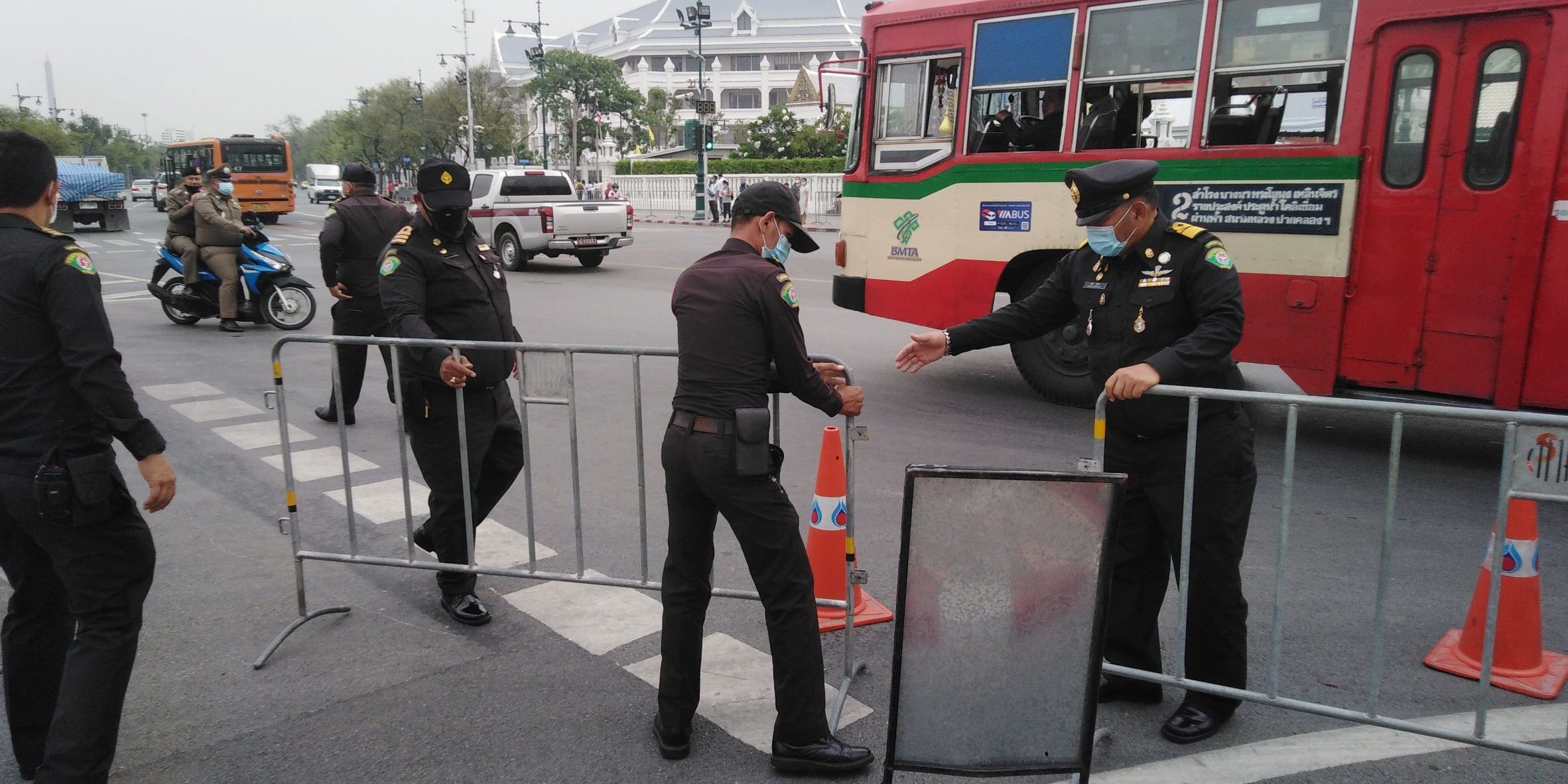 วันนี้ (6เม.ย.64) เวลา 09:45 น. นายสุรเดช อำนวยสาร ผู้อำนวยการเขตพระนคร มอบหมายให้ นายสัมฤทธิ์ สุมาลี ผู้ช่วยผู้อำนวยการเขตพระนคร สั่งการให้ นายคณิต ชุมช่วย หัวหน้างานตรวจและบังคับการ (รักษาการในตำแหน่งหัวหน้าฝ่ายเทศกิจเขตพระนคร) นำกำลัง จนท.เทศกิจ ชุด254 ร่วมกับ จนท.ตำรวจ สน.พระราชวัง ลงพื้นที่ จัดตั้งวางกั้นแผงเหล็กกั้น ตลอดแนวถนน ในเส้นทางเสด็จพระราชดำเนินพระบรมมหาราชวัง วัดพระแก้ว บริเวณสามแยกไฟแดง ฝั่งตรงข้ามศาลหลักเมือง เขตพระนคร กรุงเทพฯ