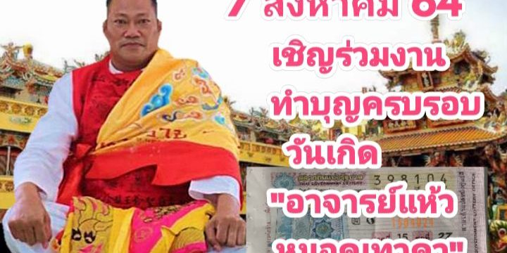 ขอเชิญชวนศิษย์ยานุศิษย์ ร่วมงาน ทำบุญวันคล้ายวันเกิด อาจารย์แห้ว หมอดูเทวดา ในวันที่ 7 สิงหาคม 2564 ณ ศาลเจ้าพ่อนาคราช ตำบลกันแสง อำเภอตาคลี จังหวัดนครสวรรค์