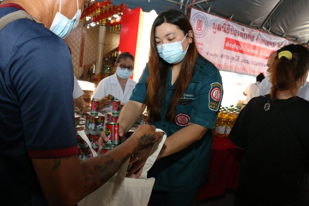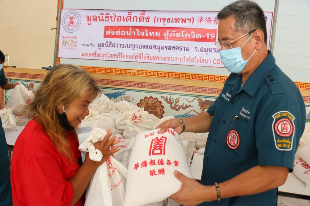 ระหว่างวันที่ 31 มีนาคม – วันที่ 7 เมษายน 2564 มูลนิธิป่อเต็กตึ๊ง นำโดย นายพินัย ศรีพนาสณฑ์ ผู้จัดการฝ่ายสังคมสงเคราะห์ จัดทีมเจ้าหน้าที่สังคมสงเคราะห์ ลงพื้นที่แจกถุงยังชีพบรรจุหน้ากากอนามัย และเครื่องอุปโภคบริโภค ประกอบด้วย ข้าวสาร บะหมี่กึ่งสำเร็จรูป ปลากระป๋อง น้ำปลา น้ำมันพืช และน้ำพริก แก่ผู้ได้รับผลกระทบจากสถานการณ์โควิด-19 ในพื้นที่ส่วนภูมิภาค 10 จังหวัด ประกอบด้วย จังหวัดราชบุรี สมุทรสาคร ชลบุรี สมุทรสงคราม ระยอง กาญจนบุรี เชียงราย ตาก ตราด และเพชรบุรี รวม 9,500 ชุด คิดเป็นมูลค่าทั้งสิ้น 3,800,000 บาท (สามล้านแปดแสนบาทถ้วน) รวมทั้งจัดหน่วยแพทย์สงเคราะห์ชุมชนนำทีมแพทย์อาสาและเจ้าหน้าที่ ลงพื้นที่ให้บริการ ตรวจรักษาโรคทั่วไป แจกจ่ายยาแก่ประชาชนในพื้นที่จังหวัดชลบุรี เชียงราย ตาก และเพชรบุรี โดยมีผู้แทนหน่วยงานรัฐ และสมาคม/มูลนิธิแต่ละจังหวัดเป็นผู้ประสานงานและร่วมในพิธี พร้อมด้วย ดร.ปภัสรา เตชะไพบูลย์ อาสาสมัครกิตติมศักดิ์ ร่วมแจกจ่ายถุงยังชีพที่จังหวัดระยองเมื่อวันที่ 4 เมษายน 2564 ที่ผ่านมา